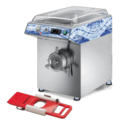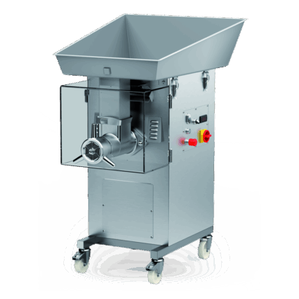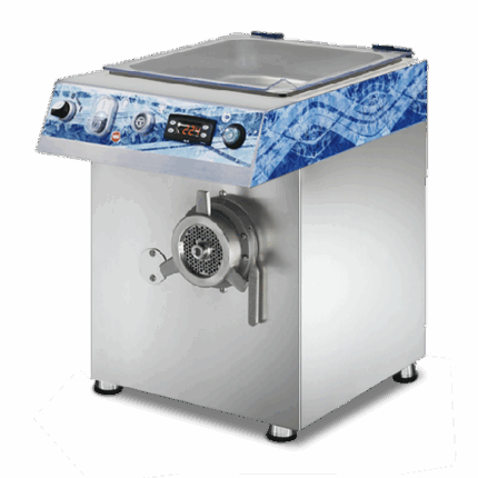 מטחנה תעשייתית מקוררת לטחינת כמויות גדולות של בשר בדרישות היגיינה גבוהות. גוף המטחנה עשוי נירוסטה כולו, מצוידת במנוע 7 כח סוס או 9 כח סוס. המטחנה מצויידת במגש עליון גדול ופתח הכנסת מסה נוח לעבודה.