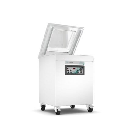 מכונת ואקום ריצפתית לאריזה איכותית. ניתן להזמינה עם פס הלחמה יחיד באורך 600 מ”מ או עם 2 פסי הלחמה באורך 520 מ”מ . מרחק בין פסים: 500 מ”מ.