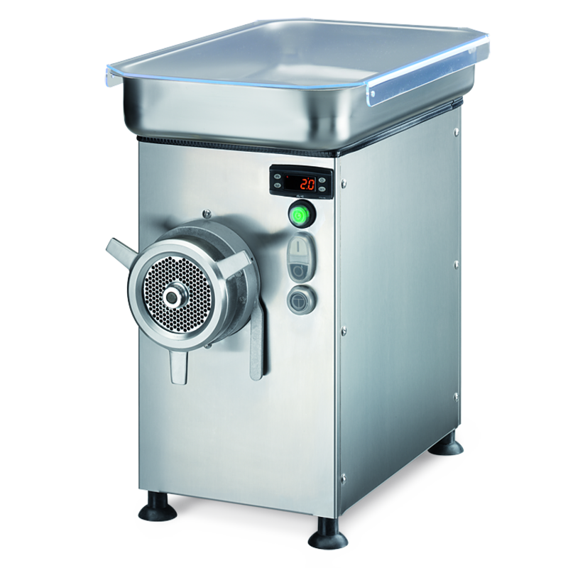 מטחנה מקוררת תלת פאזית 32, מגש קבוע, קומפקטית ויעילה. הספק מנוע 3 כח סוס, הספק טחינה של כארבע מאות וחמישים ק”ג בשעה.נעילת ראש מתקדמת. הגוף כולו וראש המטחנה עשויים נירוסטה איכותית. הפעלה קדימה ואחורה. כפתורי הפעלה בחזית. קלה לתפעול ולניקוי.