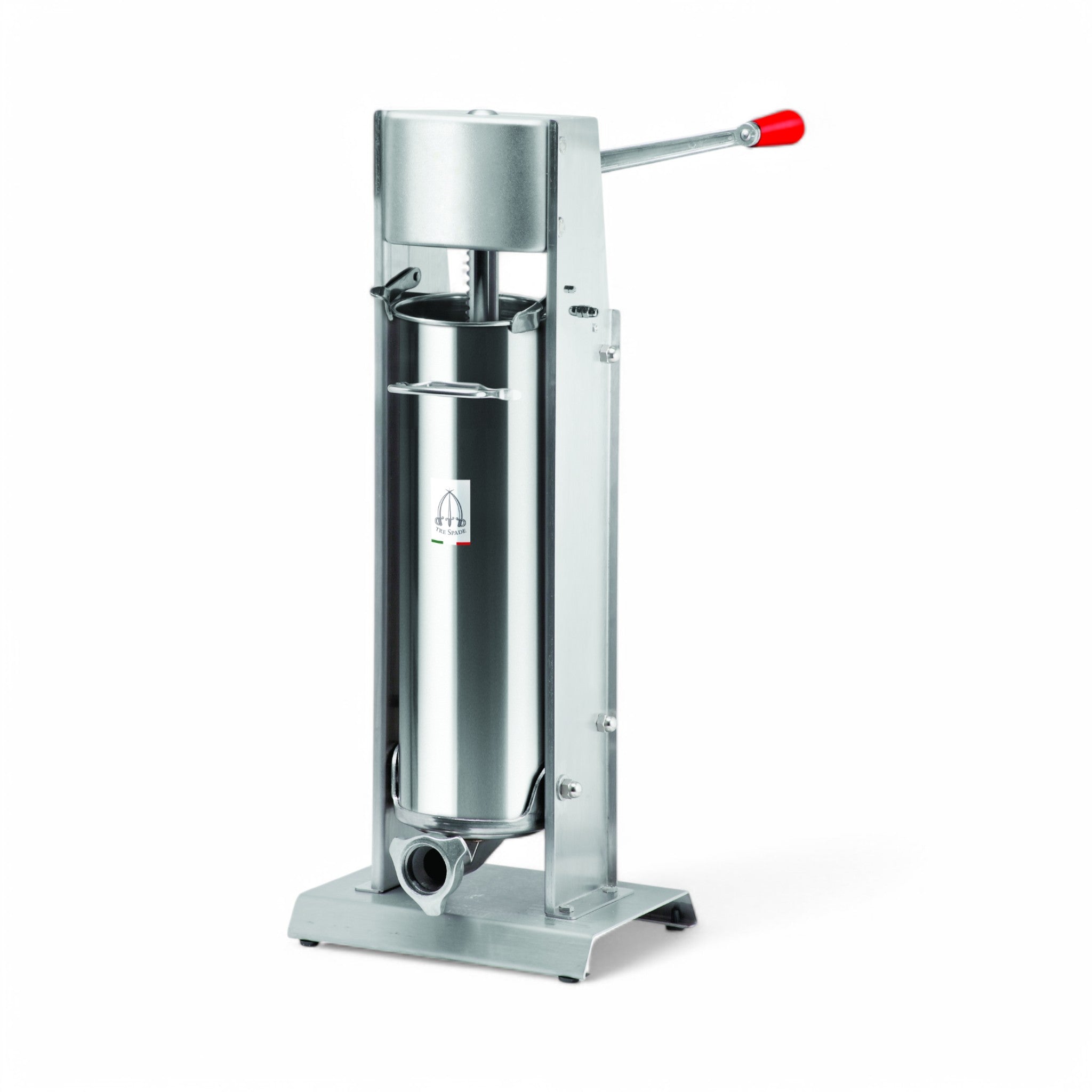 מכונת מילוי נקניקיות עומדת ידנית, בנפח 10 ליטר. מתאימה לשימוש באטליזים או מסעדות.