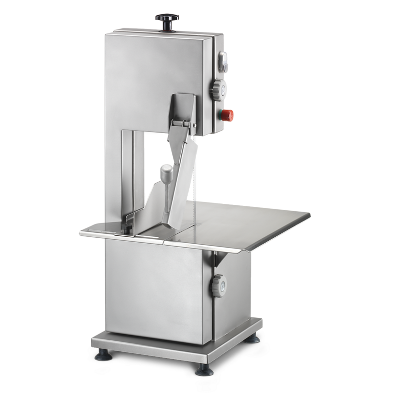 מסור סרט לבשר שולחני, עשוי נירוסטה. גובה חיתוך 240 מ"מ. לשימוש בחנויות דגים, מעדניות, סופרמרקטים ומסעדות. מנגנון מתיחה מתקדם.