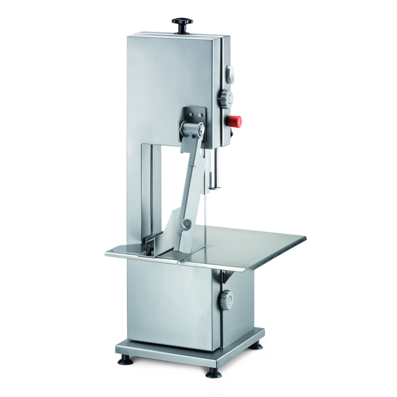מסור סרט לבשר שולחני, עשוי נירוסטה. גובה חיתוך 300 מ"מ. לשימוש בקצביות, מעדניות, סופרמרקטים ומסעדות. מנגנון מתיחה מתקדם.