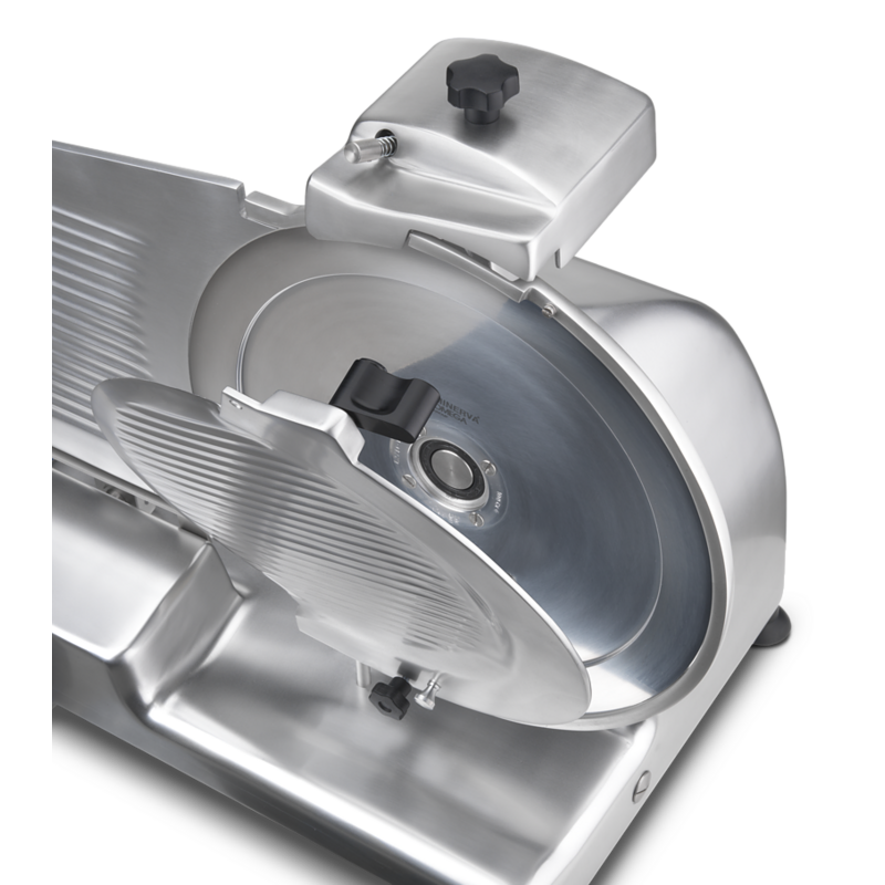 פורסת 350 מ”מ – מאפשרת חיתוך קל, מהיר ומדויק. הפורסת מונעת גיר. מנגנון השחזה מובנה. מתאימה לחיתוך נקניק וגבינה. מכונה שקטה, פשוטה להפעלה ונוחה לפירוק וניקוי.